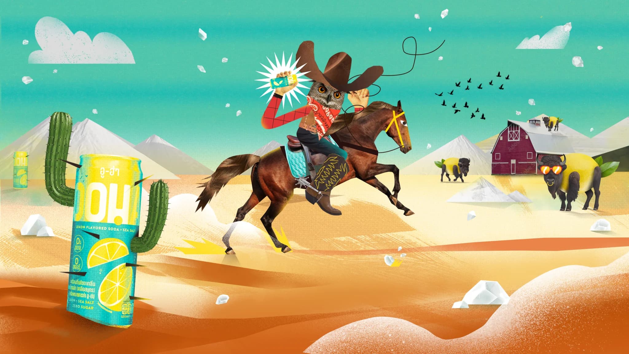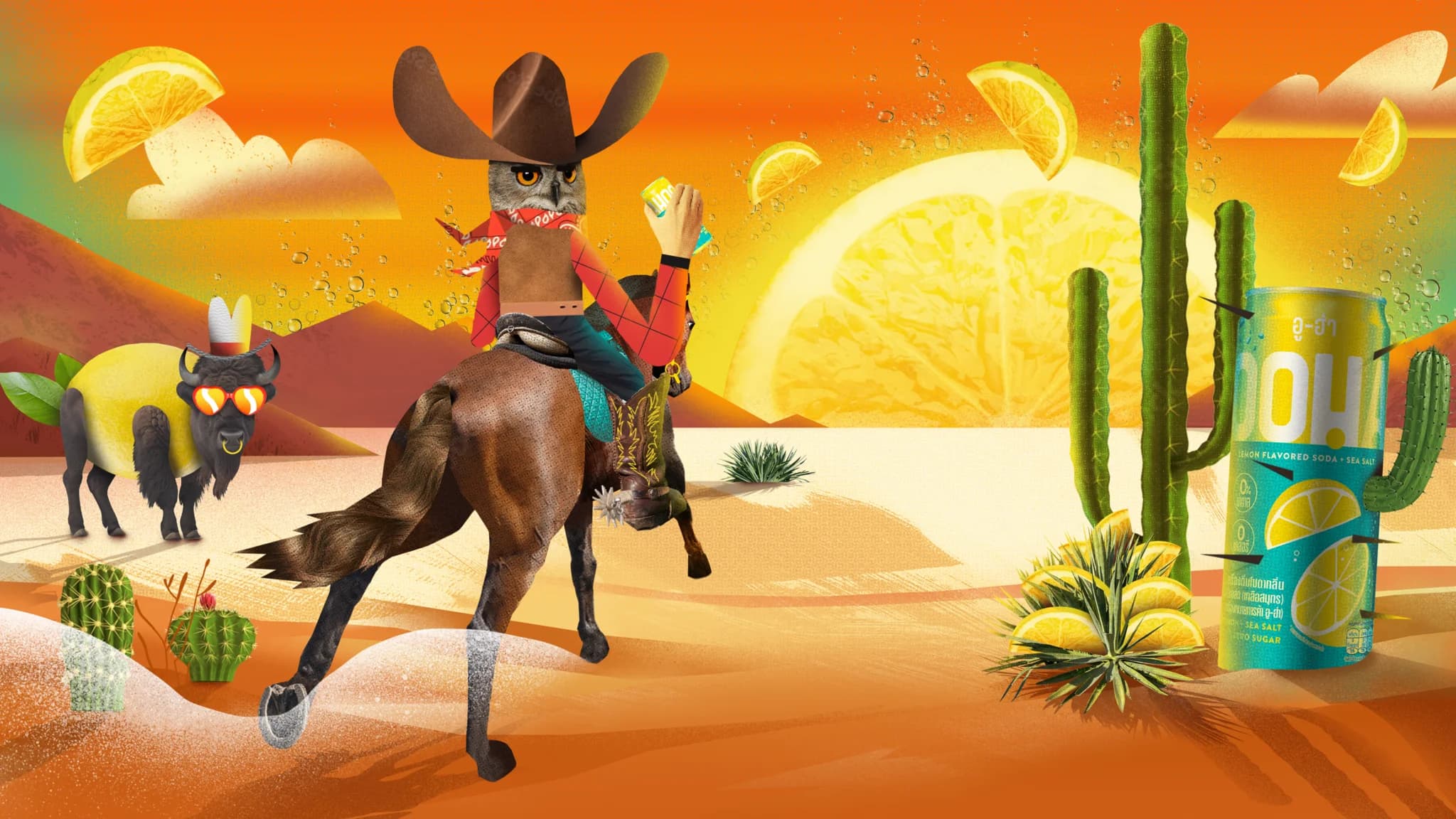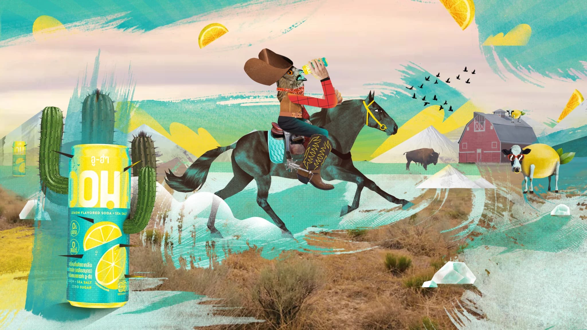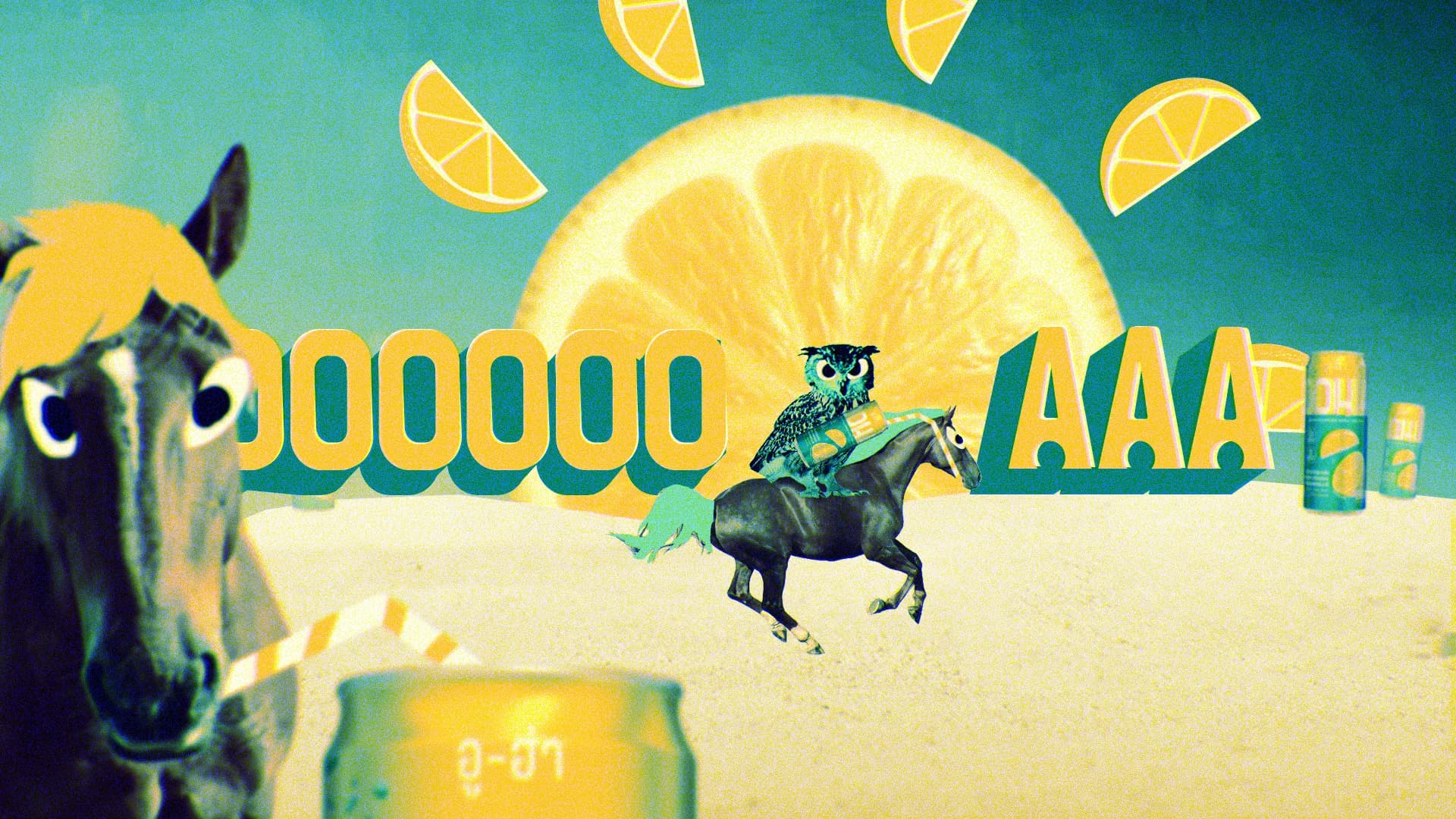 It’s not everyday you get to watch an owl riding a horse… see lemons engrossed in a heated tennis match… or witness a giant can brandishing lasers to terrorise a city… But, how else could you describe the clashing of two bold and distinct flavours within every can of OOHA? Well exactly like that!
